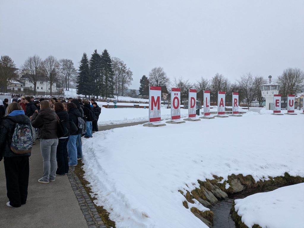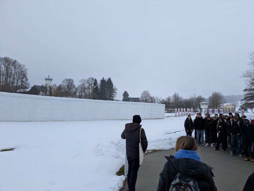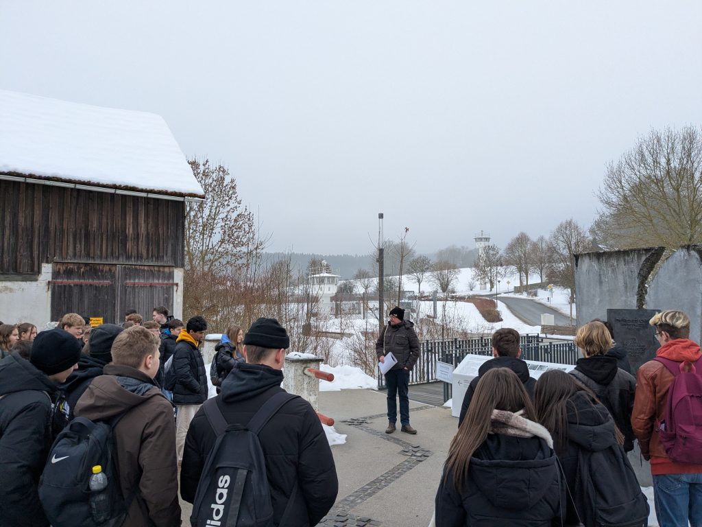 Einen Einblick in die ehemalige innerdeutsche Grenze und die damaligen Bedingungen erhielten unsere 9. Klässler anlässlich einer Exkursion ins Deutsch-deutsche Museum Mödlareuth. Nach einer kurzen Einführung und einer Videopräsentation ging es hinaus ins Gelände, wo die Grenzbefestigungen erkundet und die Schicksale der Betroffenen eindrucksvoll geschildert wurden. Den Abschluss der Exkursion bildete ein Rundgang im neu gestalteten Museumsgebäude, das weitere Einblicke in Form von Exponaten, Bild- und Tondokumenten sowie einer Nachstellung der Ballonflucht mithilfe von VR-Brillen bot.