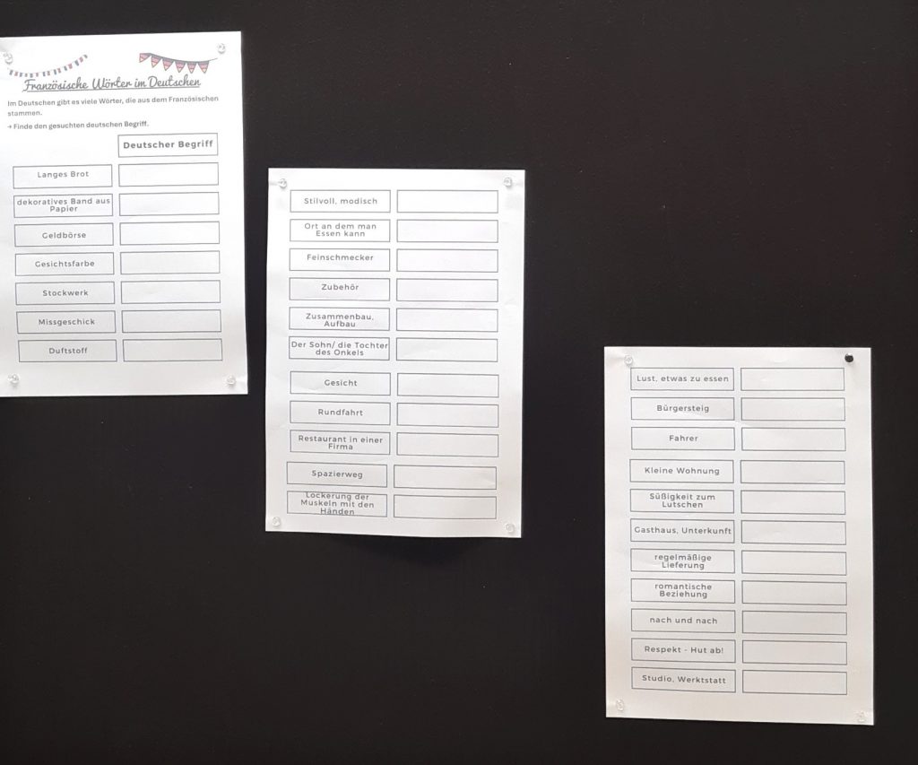 Schautafeln informierten die Mitschüler über französische Wörter im Deutschen. Außerdem wurde ein Quiz mit deutsch-französischen Paaren erstellt.