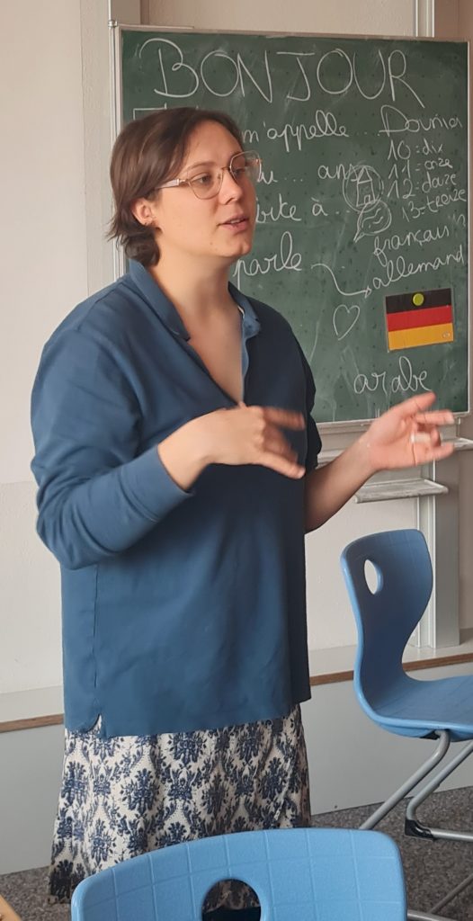 Mit Informationen über Land und Leute, Spielen und Musik und ganz viel französischem Charme zeigte sie unseren Schülern der 6. Klassen dass sie schon viel mehr verstehen als gedacht und begeisterte sie für das französische Nachbarland und die französische Sprache.