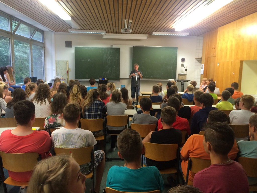 Am 21.07.2016 haben wir den Autor Jaromir Konecny zu uns an die Schule eingeladen, wo er für die gesamte siebte Jahrgangsstufe eine Autorenlesung abhielt. Hier erwartete die Schüler jedoch keine gewöhnliche Autorenlesung, sondern eine unterhaltsame Show, in der er einerseits die Tücken der deutschen Sprache beschrieb, andererseits aber auch zur Toleranz untereinander aufrief.